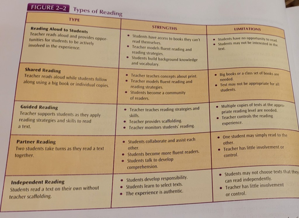 - Shared Reading: Teachers use shared reading to read books aloud or as a group, that the students would not be able to read on their own.