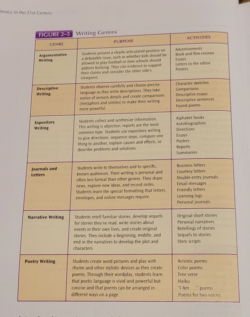 In my future classroom I think it is going to be very important to ensure that I teach students about the relationship between reading and writing. Until this class and reading this part of the textbook, I wasn’t aware of how mush the two affect one another.