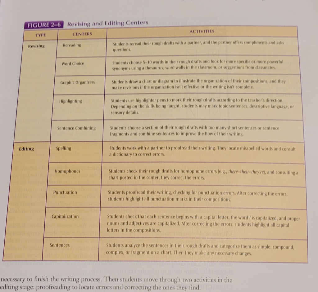 - Revising Groups: Groups where students will present something they’ve written for revision. Group members look at the writer’s rough draft and will suggest possible revisions.