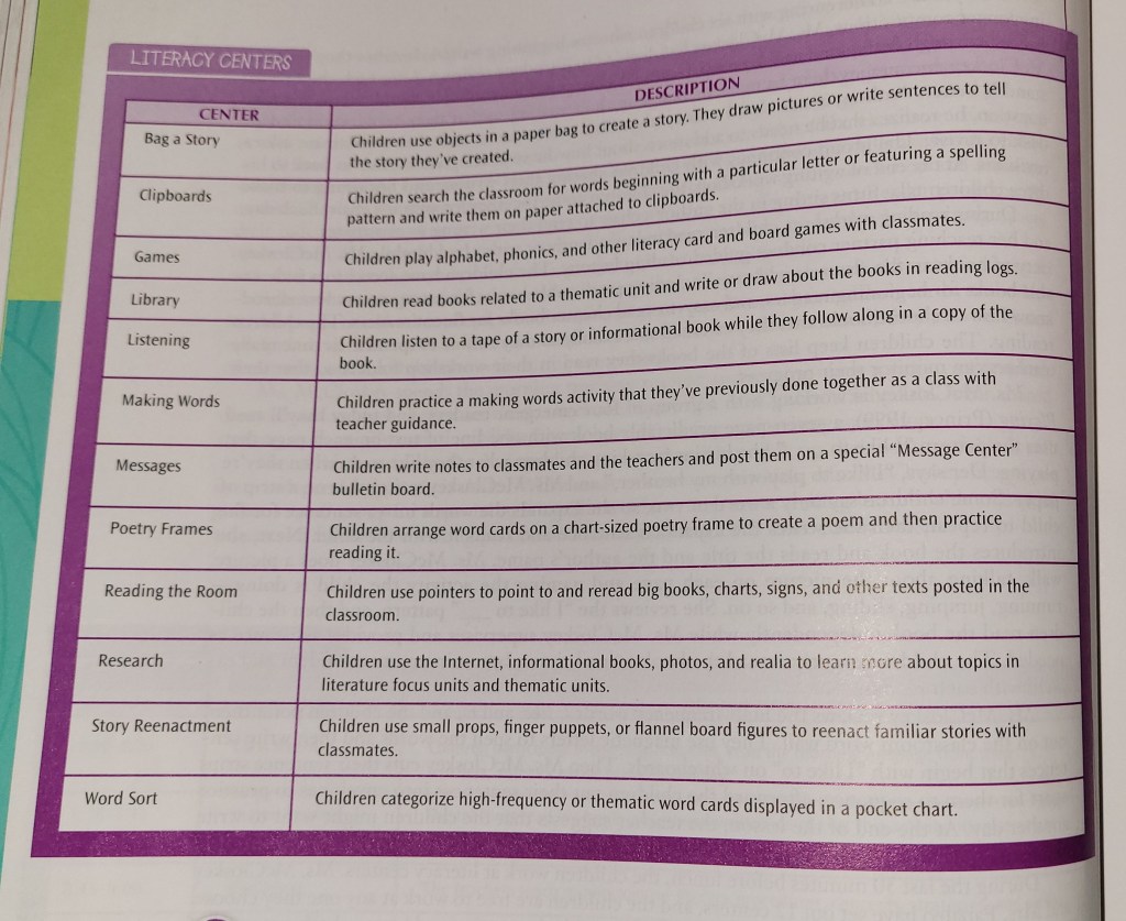 - Through these activities, students learn different writing skills and gain writing confidence. This type of center helps children to discover the social purposes of reading and writing.