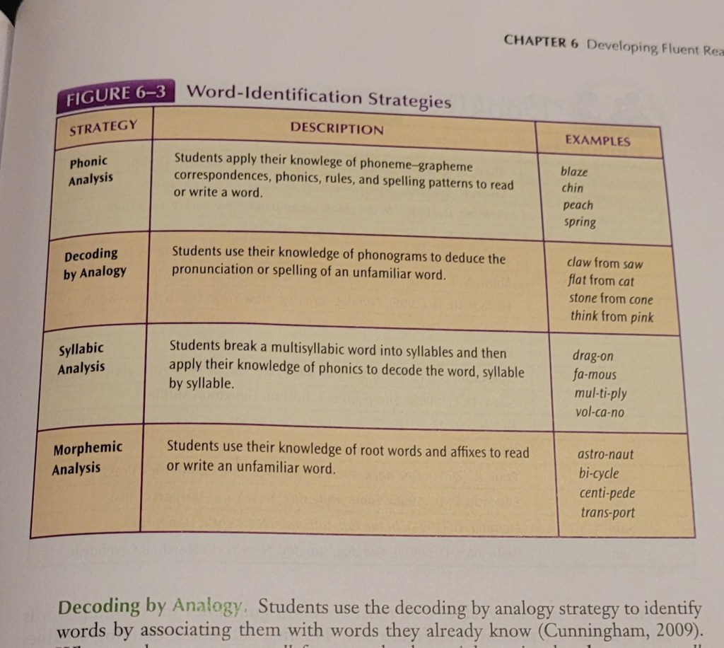 - Decoding by Analogy: students use this strategy to identify words by associating them with words that they already know.